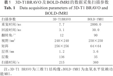3D-T1BRAVO及BOLD-fMRI的数据采集扫描参数