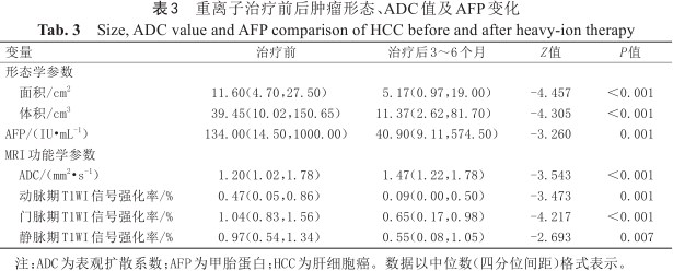 探讨MRI在重离子疗法(heavy-ion therapy, HIT)治疗肝细胞癌(hepatocellular carcinoma, HCC)疗效评价中的价值。