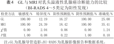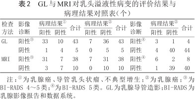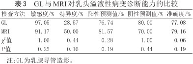 GL与MRI对乳头溢液性病变诊断能力的比较