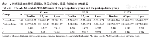 The AL, SE and AL/CR difference of the pre-epidemic group and the post-epidemic group