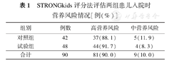 STRONGkids评分法评估两组患儿入院时营养风险情况[例(%)]