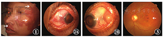 SWS目前尚无统一的诊断标准,典型的临床表现包括颜面部血管瘤同时伴有癫痫、偏瘫或青光眼、眼球突出等。比较认可的诊断标准为面部、脉络膜及软脑膜3个部位同时存在2个及以上部位的血管瘤,如果3个部位均受累为完全型,累及2个部位则为不完全型[2]。Roach[3]曾对SWS进行分型,I型颜面部和软脑膜均有血管瘤,伴或不伴青光眼(又称经典型SWS);Ⅱ型仅有颜面部血管瘤,无颅内病变;Ⅲ型仅有软脑膜血管瘤,无颜面部血管瘤。SWS眼部的特征包括:(1)先天性或青年性青光眼,多位于颜面血管瘤的同侧。(2)眼部尚可见眶部血管瘤、眼外肌麻痹、斜视、高度屈光不正、眼球突出、结膜和巩膜毛细血管扩张、角膜缘血管网、虹膜血管瘤[4]。(3)颜面部血管瘤的同侧眼底色泽较暗,呈天鹅绒样反光,脉络膜血管迂曲、扩张、隆起,并可见圆形或类圆形粉红或暗红色大小不一的脉络膜血管瘤,一般不超过6 PD,多见于后极部。(4)晚期表现为视网膜变性、视网膜脱离、视盘水肿等[5]。SWS的全身特征包括:(1)颜面部皮肤沿三叉神经第一支或各支分布葡萄样紫红色血管瘤,上至一侧前额或头顶,下方可扩展至唇部,压之不褪色,可有半侧面部萎缩。(2)四肢及躯干皮肤、同侧脑及脑膜也可发生血管瘤及血管畸形。(3)常伴有癫痫、惊厥,对侧轻度偏瘫或痉挛性偏瘫等。本例患者有颜面部血管瘤,同时存在眼部脉络膜血管瘤,可以诊断该病,属于SWSⅡ型,同时患者存在球结膜血管扩张及结膜囊肿,继发视网膜脱离,符合该病表现。本例患者为成人,不伴有癫痫及偏瘫等其他全身体征。SWS目前尚无法根治,主要为对症处理。本例患者由于个人原因,未进行治疗,仍在随诊观察中。