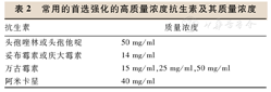 常用的首选强化的高质量浓度抗生素及其质量浓度