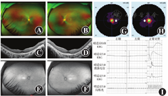 患者,男,14岁,因自幼夜间视力差于2019年7月至北京协和医院就诊。患者为足月剖宫产,自幼听力欠佳,8岁时因言语欠清行舌系带手术,家族中无类似疾病患者。患者右眼裸眼视力0.4,矫正视力0.6+(-0.50DS/-1.75DC×20);左眼裸眼视力0.5,矫正视力0.6+(-0.75DS/-1.00DC×160);右眼眼压15.6 mmHg(1 mmHg=0.133 kPa),左眼11.7 mmHg;双眼前节未见明显异常。眼底彩色照相显示视网膜广泛斑驳样色素改变,黄斑区可见金箔样反光(图1A、B);色盲本检查显示色觉无异常;光学相干断层扫描显示双眼除中心凹外椭圆体带信号消失(图1C、D),自发荧光显示双眼黄斑区高自发荧光(图1E、F);视野示双眼中心透亮区(图1G、H);视网膜电图检查显示双眼各波记录不到(图1I)。耳鼻喉科会诊行纯音测听检查,提示患儿高频听力下降,诊断为感音神经性耳聋。患者眉毛浓密,四肢体毛多。临床拟诊断为综合征性视网膜色素变性(retinitis pigmentosa,RP)。