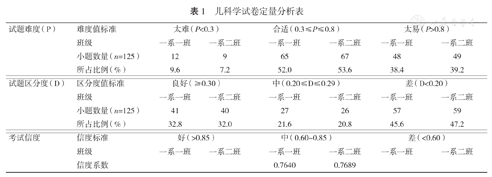 儿科学试卷定量分析表