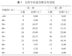 从一系一班学生儿科学期末考试成绩整体分布和具体分数分布看,151人参加考试,最高分88.0分,最低分41.6分,平均分67.2分。分数分布情况:不及格人数共计31人,占20.53%;大部分学生成绩在中下水平(60~70分53人,占35.10%;70~80分59人,占39.08%)。整个试卷包含小儿内科学、儿童保健学以及小儿传染病学的理论知识,大部分学生对于儿保、心血管以及内分泌方面的知识考点掌握欠佳,从学生答题得分率看,得分率<30%的试题有12题,均为上述知识考点(除超纲题外)。
