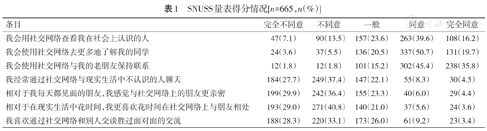SNUSS量表得分情况[n=665,n(%)]
