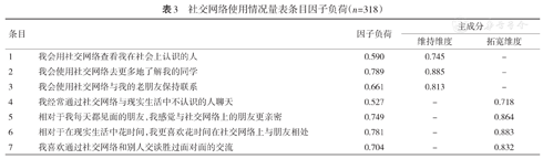 社交网络使用情况量表条目因子负荷(n=318)
