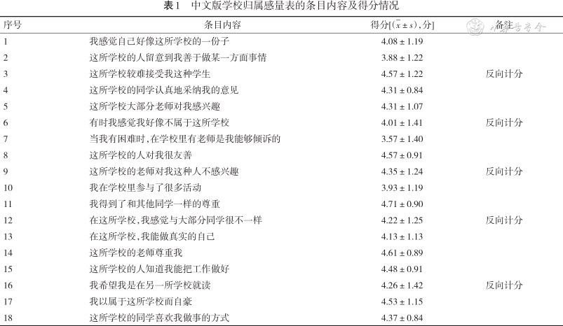 | 6 | 有时我感觉我好像不属于这所学校 | 4.01±1.41 | 反向计分 |
