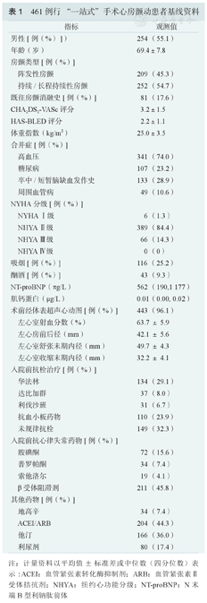 461例行"一站式"手术心房颤动患者基线资料