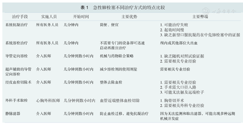 急性肺栓塞不同治疗方式的特点比较
