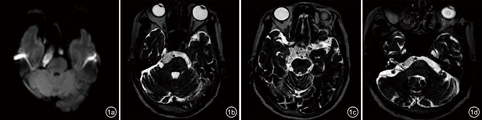 患者,女性,57岁。因"发作性右侧面部疼痛30年"入院。入院检查:神志清楚,语言流利,瞳孔等大等圆,对光反射灵敏,活动自如。右侧鼻翼及鼻翼旁触痛阳性。额纹对称,鼻唇沟等深,伸舌居中,颈软。四肢活动自如。初步诊断为颅内占位:右侧胆脂瘤?右侧继发性三叉神经痛(v2、v3)。MR示右侧鞍区及脑干区域幕下占位,胆脂瘤可能(图1)。
