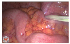 此病例可充分体现腹腔镜阑尾切除术优势所在:相对于传统麦氏切口阑尾切除术,腹腔镜阑尾切除术具有视野广阔的特点,不易漏诊。此患者如行开腹手术,由于回盲部位置较高,反麦氏切口操作可能较困难,左侧探查口或正中切口则创面较大,影响术后恢复及美观。患者经腹腔镜阑尾切除手术后,腹痛及发热症状缓解,术后1周复查时Trocar穿刺口愈合良好,肠蠕动功能恢复良好。