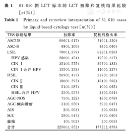 61 610例LCT标本的LCT初筛和复核结果比较[n(%)]