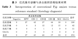 Interpretation of conventional Pap smears versus reference standard (histology diagnosis)