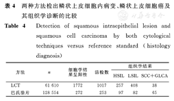 两种方法检出鳞状上皮细胞内病变、鳞状上皮细胞癌及其组织学诊断的比较