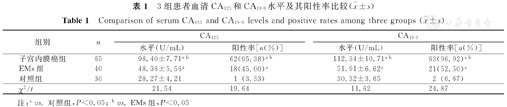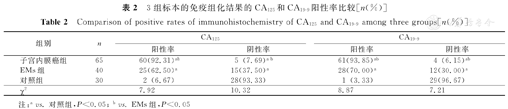 CA125和CA19-9在子宫内膜癌中高表达,且血清学水平与组织学水平具有正相关性,具有重要的诊断价值。