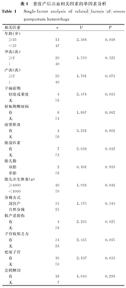 Single-factor analysis of related factors of severe postpartum hemorrhage