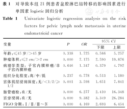 对导致本组21例患者盆腔淋巴结转移的影响因素进行单因素logistic回归分析