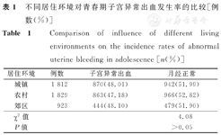 不同居住环境对青春期子宫异常出血发生率的比较[例数(%)]
