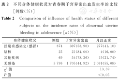 不同身体健康状况对青春期子宫异常出血发生率的比较[例数(%)]
