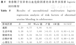 青春期子宫异常出血危险因素的非条件多因素logistic回归模型