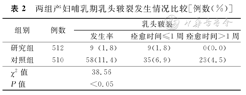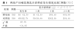 | 组别 | 例数 | 乳汁淤积症 | |||