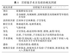 宫腔镜在150年前默默问世,迄今已成为妇科常用技术,宫腔镜检查是诊断宫腔内病变的金标准。宫腔镜手术在治疗不孕症、复发性流产、子宫畸形和其他宫腔疾病中,具有无可替代的作用。宫腔镜手术与腹腔镜、开腹手术、阴式手术齐名,被誉为现代妇科常用4大基本手术之一。宫腔镜手术需要在液体膨胀宫腔、机械或能量器械的参与下,由医师操作完成。若宫腔镜手术施术者充分了解所使用设备的性能,具备相关知识和经验,严格掌握手术适应证,谨慎并细心施术,宫腔镜手术用于诊断和治疗宫腔内病变是非常安全的,甚至部分宫腔镜手术可在诊室进行。然而,自从1869年文献报道宫腔镜应用于临床诊治妇科疾病后,宫腔镜手术并发症亦相继发生[1]。宫腔镜手术并发症发生率低,但也可能导致患者死亡。2000年荷兰报道接受宫腔镜手术的13 600例患者中,手术相关并发症发生率为0.28%[1];2002年德国报道接受宫腔镜手术的21 676例患者中,手术相关并发症发生率为0.24%[2]。2013年Wortman等[3]回顾性分析结果显示,诊室日间宫腔镜手术并发症发生率为2.7%。2014年Kayatas等[4]报道宫腔镜手术相关并发症发生率为0.27%。检索中国知网数据库1978-2014年和万方数据库2000-2014年有关宫腔镜手术并发症的文章共计17篇。在报道宫腔镜手术总例数的13篇文献中,宫腔镜手术并发症发生率为0.64%[5],提示宫腔镜手术并发症发生率较低。因此认为,宫腔镜手术是相对安全的,但同时也必须认识到宫腔镜手术并发症的潜在危险。宫腔镜手术中静脉气泡栓塞(venous air embolism,VAE)是导致患者死亡的主要原因,抢救措施有限,应加强预测,严加预防。导致宫腔镜手术并发症发生的相关因素,见表1。