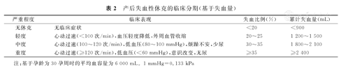 产后失血性休克的临床分期(基于失血量)