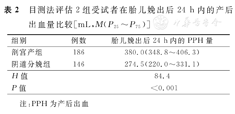 | 组别 | 例数 | 胎儿娩出后24 h内的PPH量 |