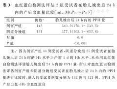血红蛋白检测法估计受试者在胎儿娩出后24 h内的PPH量,较目测法更为准确,但单独使用血红蛋白检测法估计PPH量具有一定局限性。