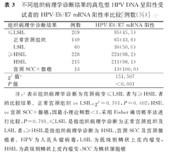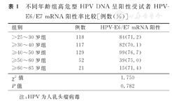 | 组别 | 例数 | HPV-E6/E7 mRNA阳性 |