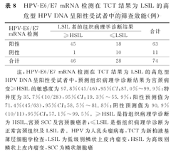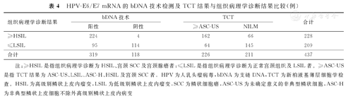 HPV-E6/E7 mRNA的bDNA技术检测及TCT结果与组织病理学诊断结果比较(例)