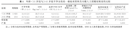 年龄<35岁组与≥35岁组不孕女性的一般临床资料及夫精人工授精妊娠结局比较