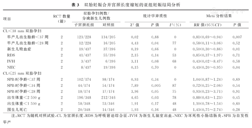 双胎妊娠合并宫颈长度缩短的亚组妊娠结局分析