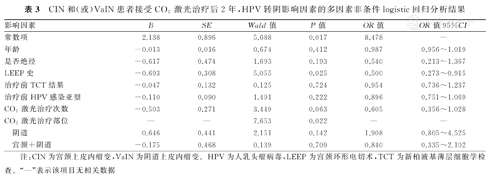 CIN和(或)VaIN患者接受CO2激光治疗后2年,HPV转阴影响因素的多因素非条件logistic回归分析结果