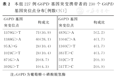 | G6PD基因突变位点 | 构成比 | G6PD基因突变位点 | 构成比 |