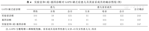 注:G6PD为葡萄糖-6-磷酸脱氢酶。家系成员是指男性患儿父亲,以及女性患儿父、母亲
