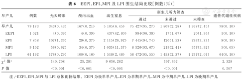 注:EEPI为极早早产儿,EPI为早期早产儿,MPI为中期早产儿,LPI为晚期早产儿