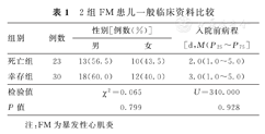 | 死亡组 | 23 | 13(56.5) | 10(43.5) | 2.0(1.0~5.0) |