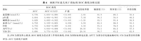 预测FM患儿死亡指标的ROC曲线分析比较