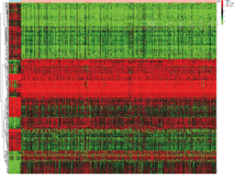 对EC差异基因的筛选结果显示,自研究组患者中,共计发现466个EC差异基因,其中上调基因为179个,下调基因为287个。研究组患者EC差异基因分层聚类热图,见图1。