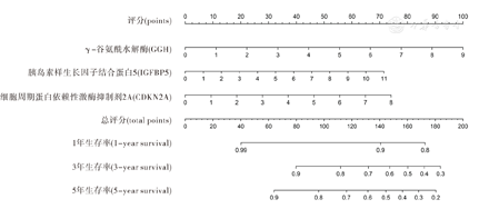 构建的GGH、IGFBP5和CDKN2A差异基因的EC患者预后预测模型,可为临床预测EC患者预后及寻找相应靶向治疗药物提供数据支持。