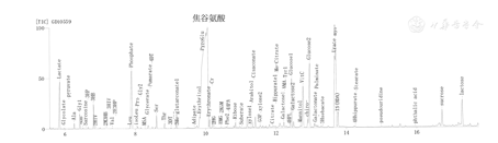 本例患儿入院后主要检查结果如下。①实验室检查结果:血常规示白细胞为11.92×109/L,中性粒细胞百分比为59.2%,血红蛋白为107 g/L(降低),C反应蛋白为10.7 mg/L,未检测网织红细胞相关指标。血型为O型,RhD+。血气分析(静脉血)示pH值为6.99(降低),乳酸为3.1 mmol/L(升高),HCO3-为6.5 mmol/L(降低),碱剩余为-23.8 mmol/L(降低);治疗6 d后复查血气分析(动脉血)示pH值为7.36,二氧化碳分压为23 mmHg(1 mmHg=0.133 kPa)(降低),氧分压为79 mmHg,乳酸为2.2 mmol/L,HCO3-为13 mmol/L(降低),碱剩余为-10.7 mmol/L(降低),SO2为95%。血氨为26.6 μmol/L。总胆红素为143 μmol/L,未结合胆红素为141 μmol/L。血K+为5.86 mmol/L(升高)、Na+为145 mmol/L。②其检查结果:尿有机酸分析示焦他谷氨酸显著增高(图1)。心脏彩色多普勒超声检查示卵圆孔未闭(3.9 mm)。胸部X射线摄片检查示双肺纹理增粗。头颅MRI检查示双侧额叶皮质下多发斑片状异常信号影。