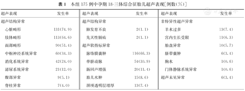 本组175例中孕期18-三体综合征胎儿超声表现[例数(%)]
