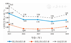 本研究结果显示,北京市近5年CH发生率处于较低水平并且有所下降,从2015年的5.43×10-4降至2019年的3.65×10-4。由于本研究CH患儿为不伴神经管缺陷者,因此北京市近5年CH发生率下降不考虑孕妇合理补充叶酸所致,而考虑可能与北京市围孕期女性营养状况较好和围生期保健的效果有关。