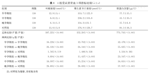 探讨孕妇血清叶酸、维生素B12、铁蛋白水平(以下简称为"贫血3项指标")及其意义。