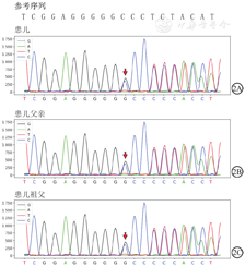 对本例患儿家系3例BFNE患者的基因全外显组进行测序结果发现,本例患儿KCNQ 2基因2号外显子存在c.373dupG(p.A125fs)杂合突变,该突变的染色体位置为chr20:62078113(基因组版本:hg19),与BFNE相关;患儿父亲及祖父KCNQ 2基因2号外显子存在c.373dupG(p.A125fs)杂合突变;其余被调查对象未检测到KCNQ 2基因2号外显子存在c.373dupG(p.A125fs)杂合突变,为野生型(图2)。本例患儿CNV未见明显异常。