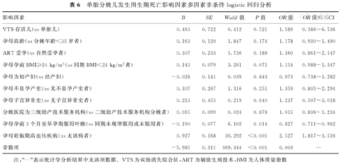 | VTS存活儿(vs单胎儿) | 0.945 | 0.144 | 42.884 | <0.001 | 2.572 | 1.939~3.413 |
