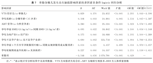 | VTS存活儿(vs单胎儿) | 0.829 | 0.170 | 23.852 | <0.001 | 2.291 | 1.643~3.196 |